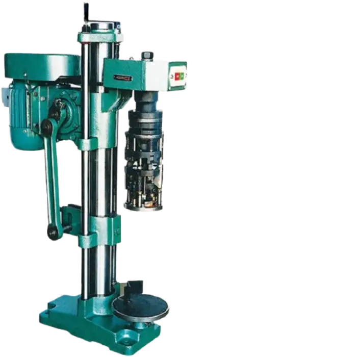 This capping machine is designed to seal aluminum screw caps on glass bottles.