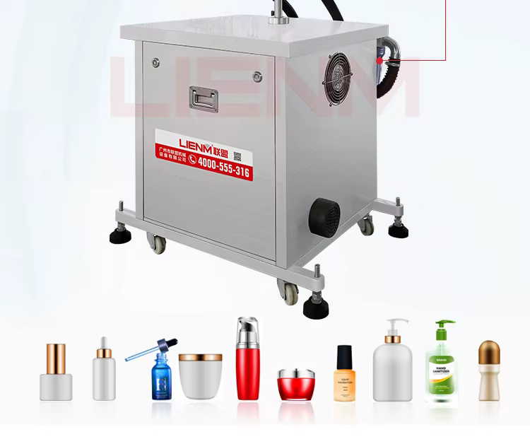 The machine uses compressed air technology to effectively clean the insides of bottles and tubes.
