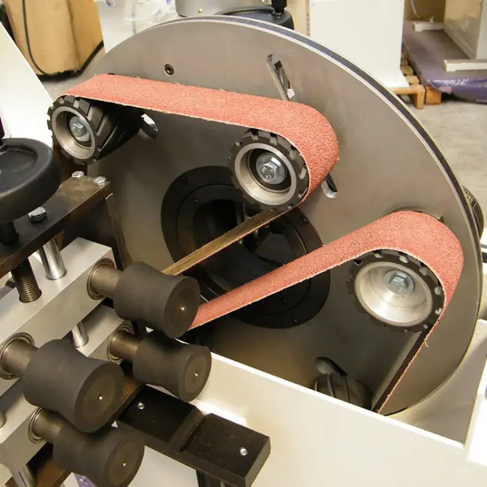 The abrasive belt motor power is rated at 2.2 kW, providing sufficient power for effective grinding and polishing.