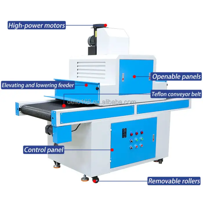 The Semi-Automatic UV Curing Machine has a power output of 3KW, which enables quick drying of UV coatings.
