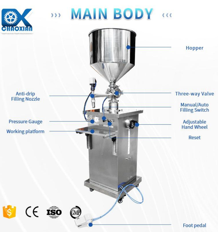 The filling range of the machine is from 100ml to 1000ml.