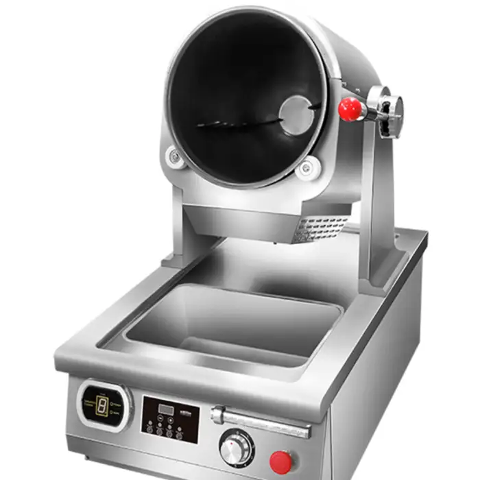 This is an electric automatic cooker/stir-fry machine (branded Semikron) designed for commercial kitchens. It combines an electric heating/stirring drum (260 mm) with automated controls and a water-gun cleaning system to cook, stir-fry and clean with minimal manual effort.