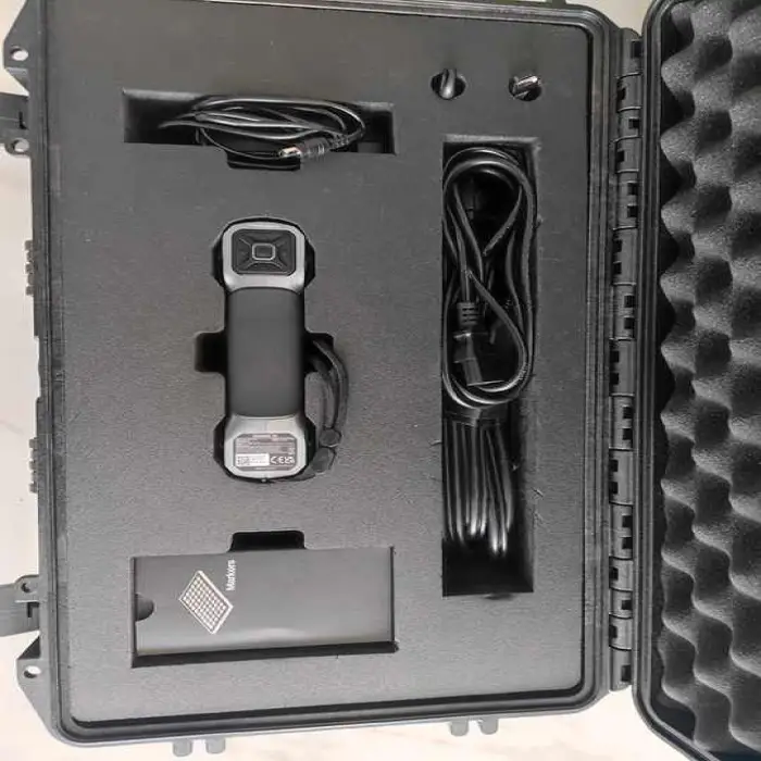The listing advertises high precision laser scanning but does not give numerical accuracy. Scan accuracy can depend on operator technique, surface properties and post-processing. Request manufacturer specs or sample scans for accuracy figures.