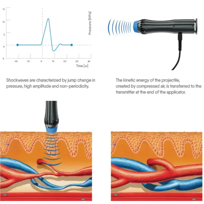 Shock wave therapy involves delivering rapid pressure waves to the affected area, which helps dissolve calcium deposits, improve vascularization, and reduce pain sensitivity.
