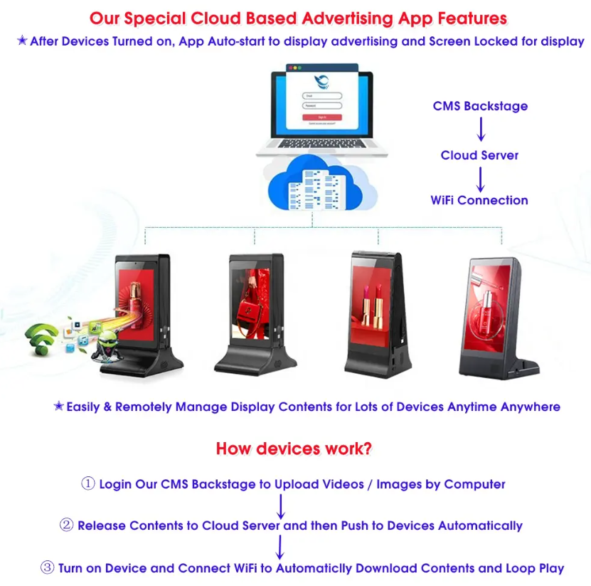 Yes, you can easily and remotely upload content using the CMS (Content Management System) backstage, making it suitable for digital signage or content sharing.