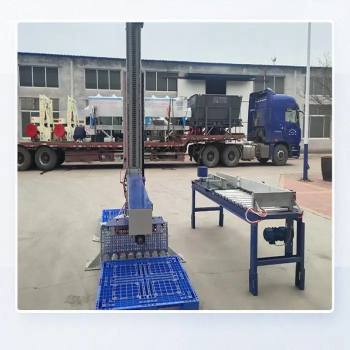 By automating the palletizing and packaging processes, the machine reduces labor costs and speeds up production, streamlining overall operations.