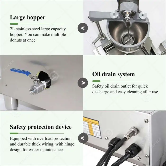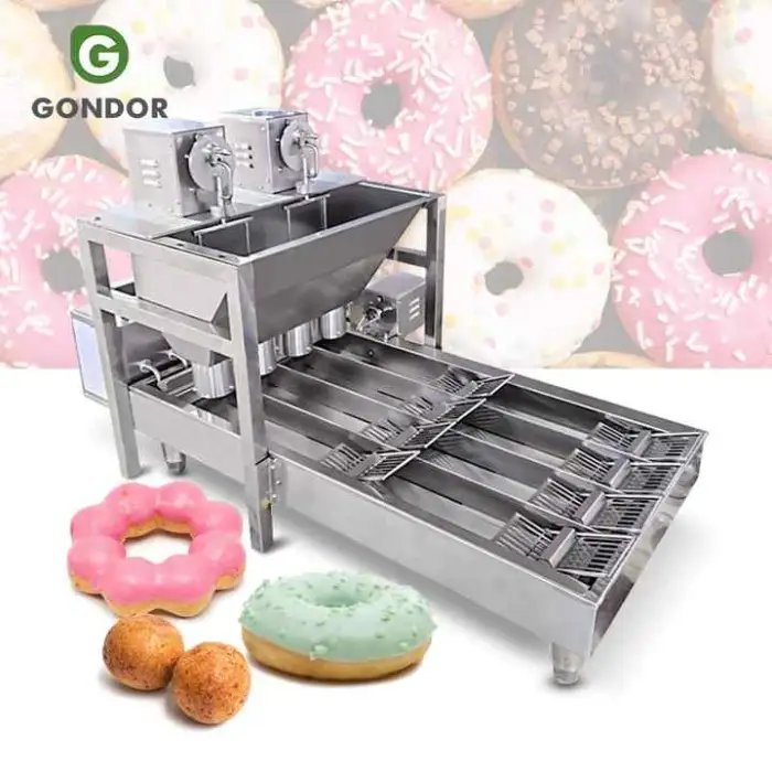 The machine can produce between 300 to 2700 pieces of donuts per hour, depending on the configuration.