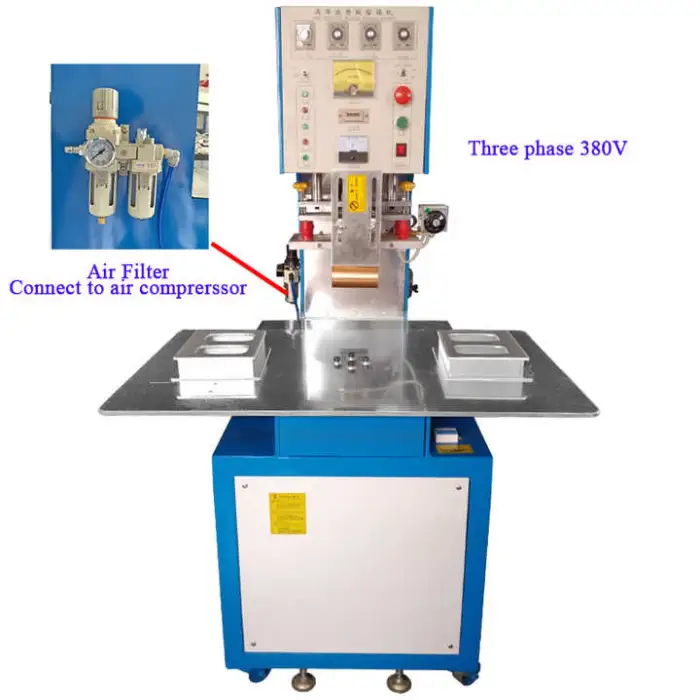 The machine can be used for packing plastic products in blister packs, manufacturing components for electronics, creating packaging for medical devices, and producing consumer goods packaging.