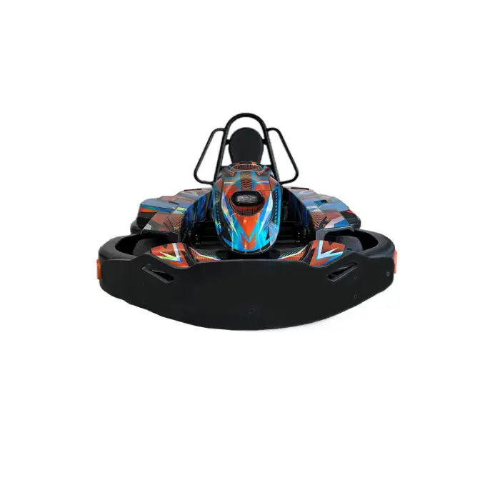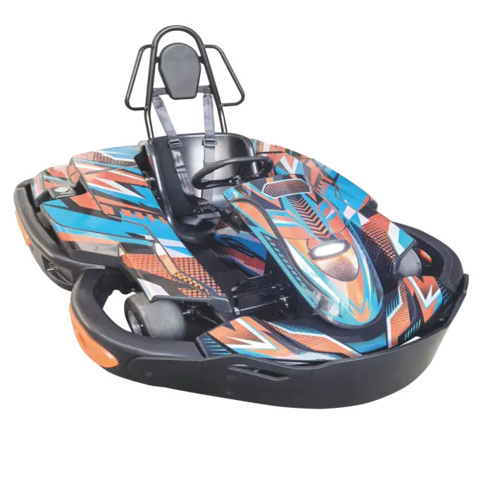 The go-kart is designed for outdoor use and can handle various terrains, making it suitable for racing tracks and recreational areas.