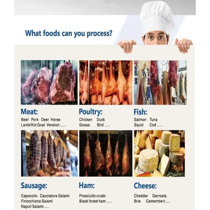You can use this cooler for dry aging beef, steak, sausage, poultry, fish, salami, and even cheese.