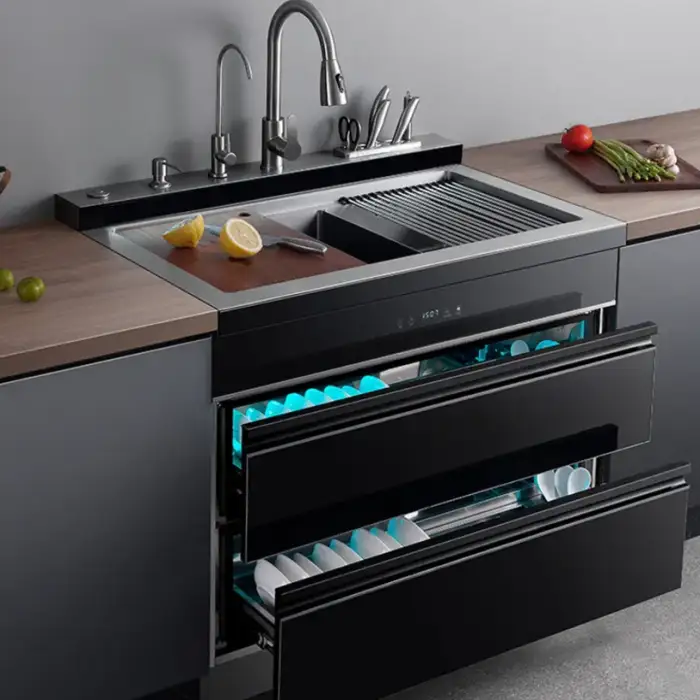 The Sink Dishwasher has a large-capacity design that can handle multiple dishes at once, making it ideal for families or busy households.