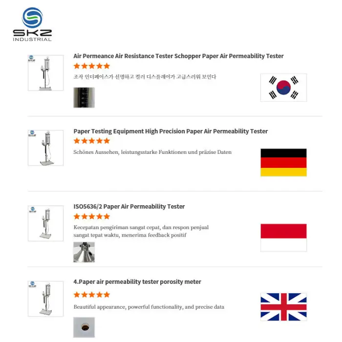 The SKZ119 is suitable for quality control in paper manufacturing, research and development in paper technology, testing air permeability for packaging materials, and assessing the performance of paper products.
