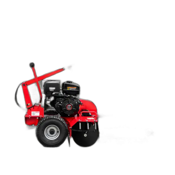 It is powered by a 15 HP gasoline engine. Use the fuel and oil types recommended in the operator manual.