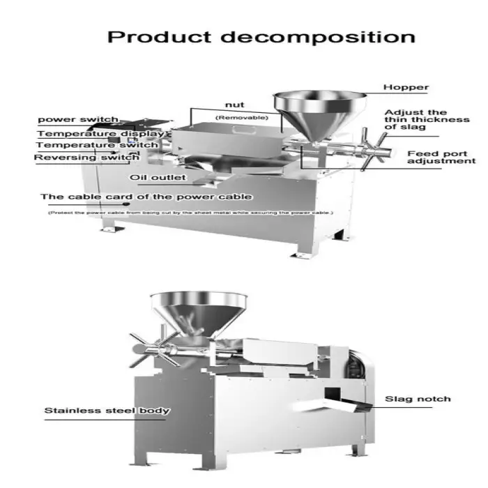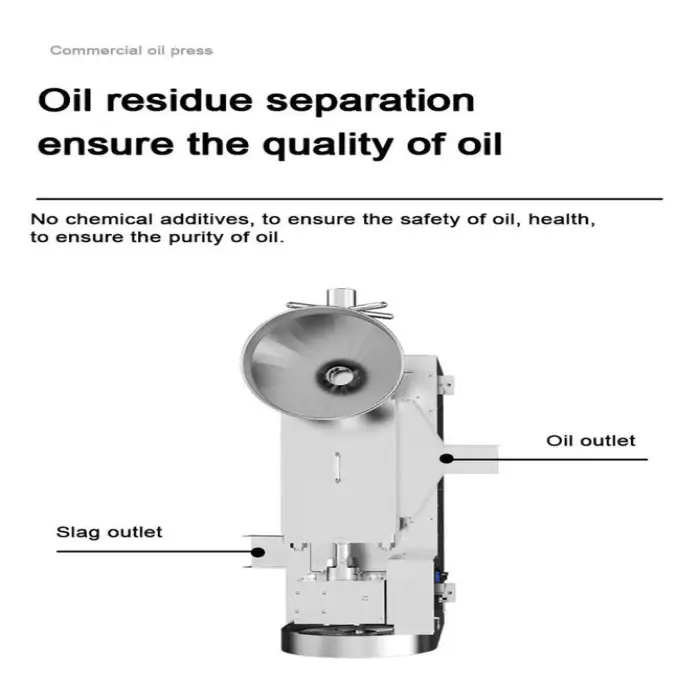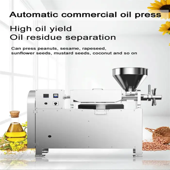 This machine is suitable for producing olive oil and can also extract oils from various seeds such as flax, soybean, and sunflower.