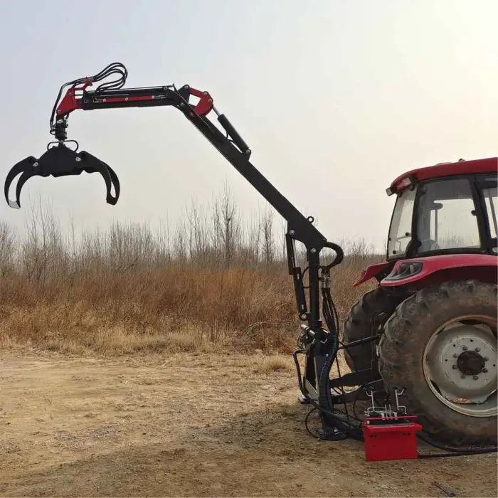 The crane features a strong hydraulic system for efficient log loading.