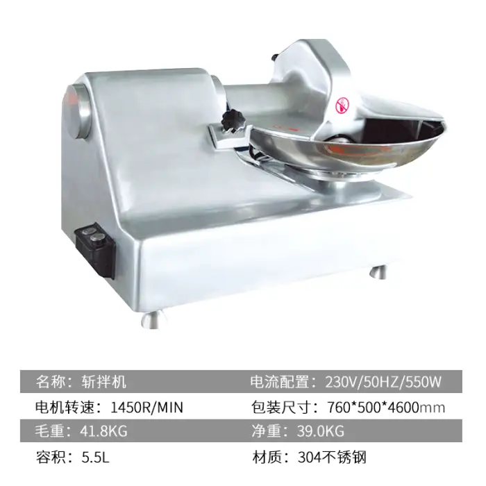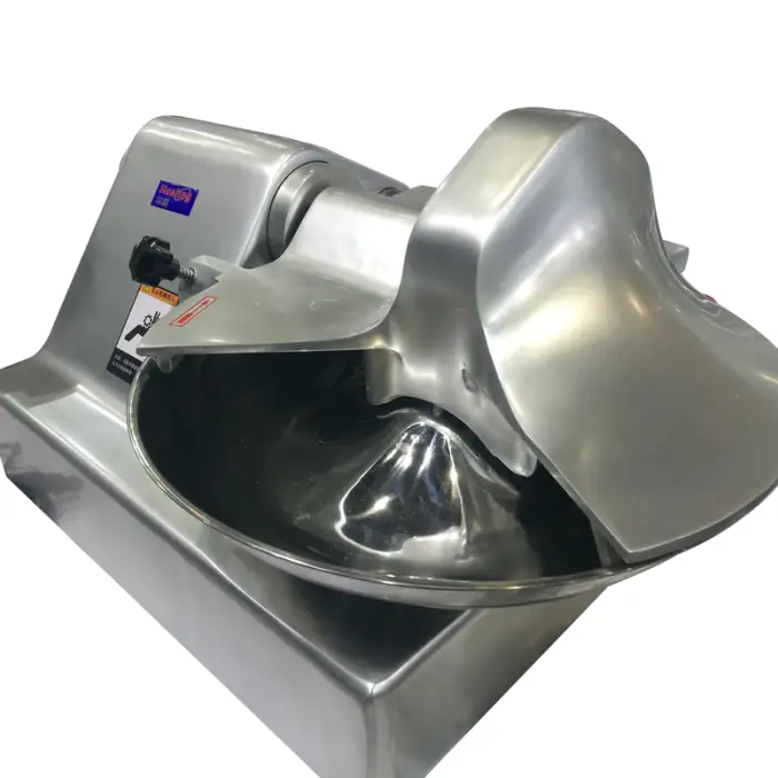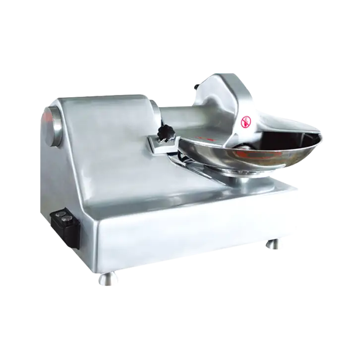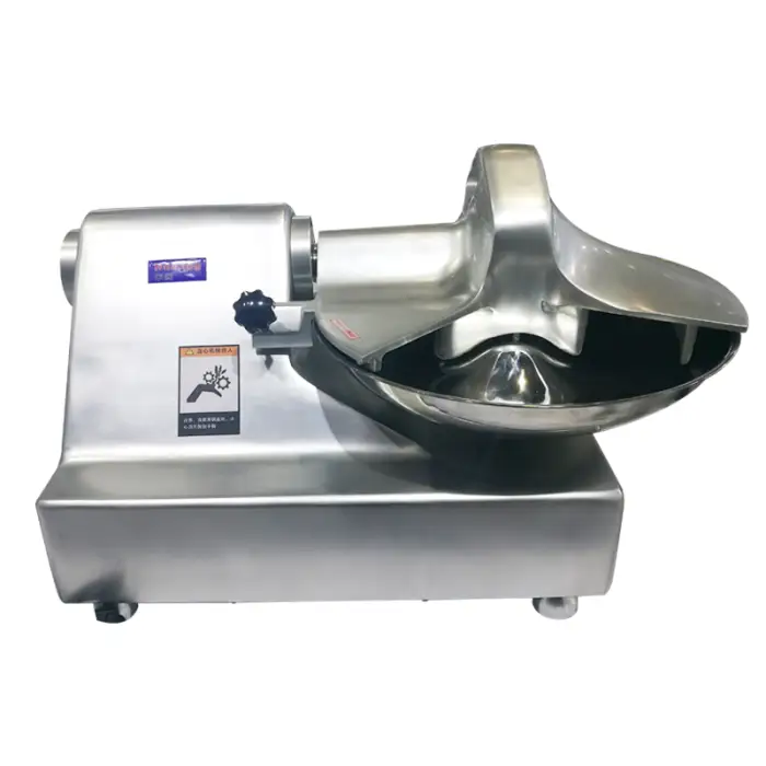 The machine is designed to cut and mix various types of food, including meat, vegetables, and fruits.