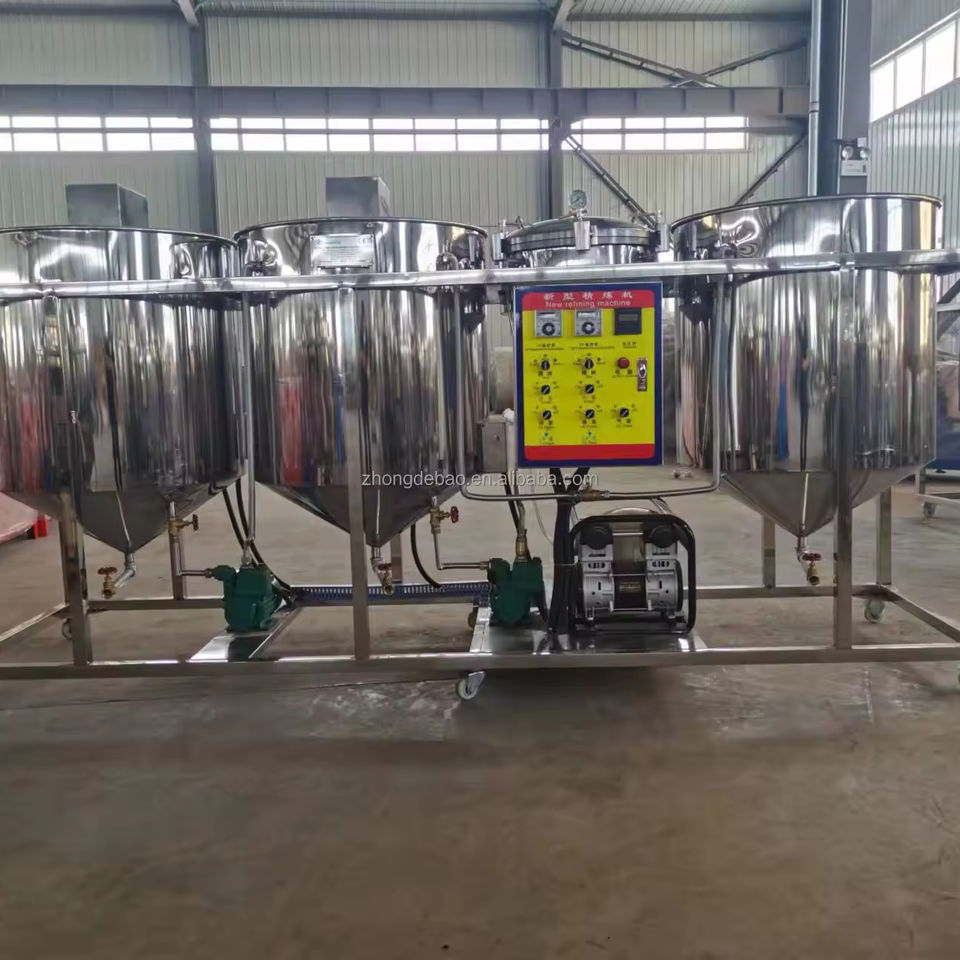 Introducing the Small Scale Edible Oil Refinery Machinery Equipment Oil Refining Machine Palm Oil Refining Machine. This versatile and compact machine is designed for refining various types of edible oils. It is ideal for small businesses looking to produce high-quality oil from raw materials efficiently.