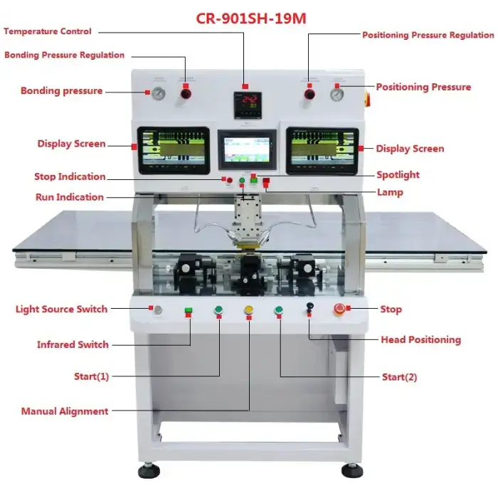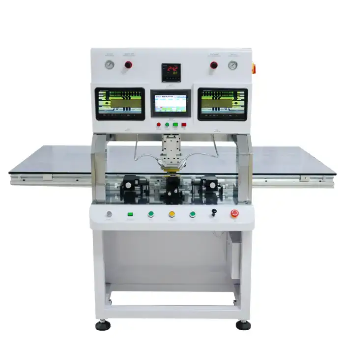 The machine uses pulse heat press technology to perform efficient, controlled bonding.