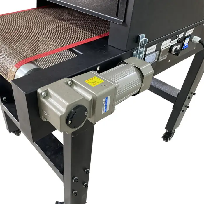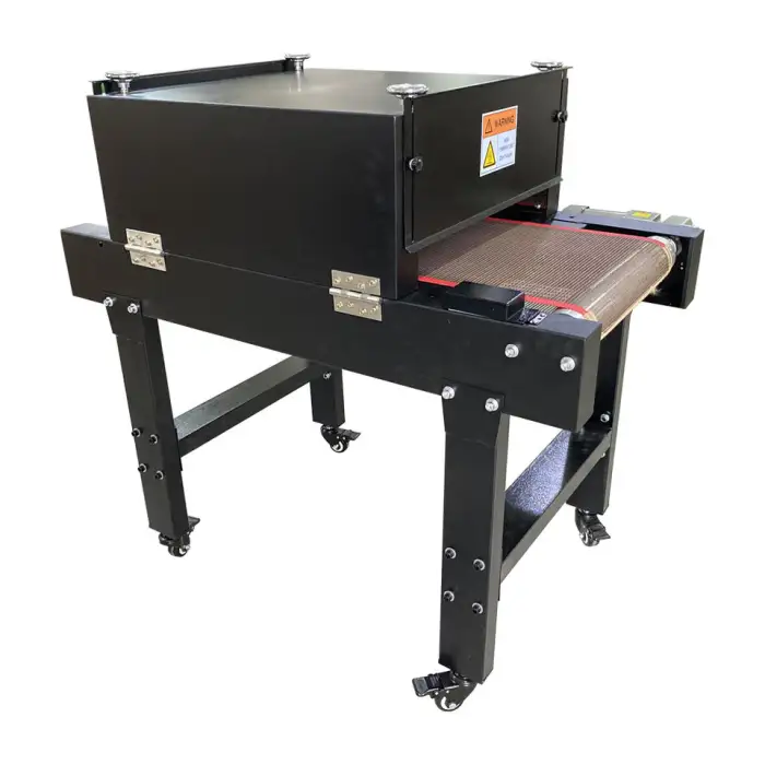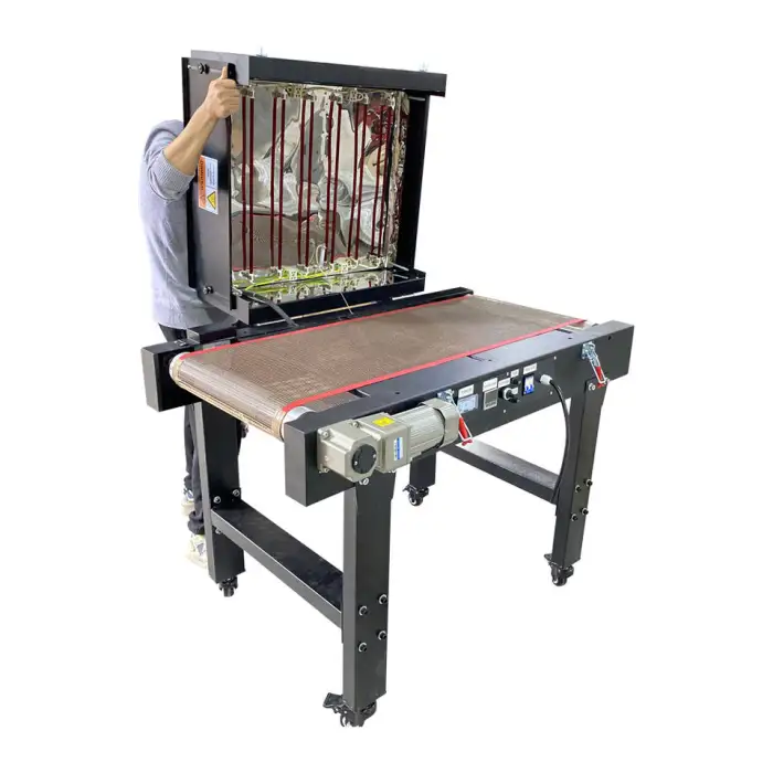This machine is suitable for drying textiles, fabrics, T-shirts, and is commonly used in screen printing shops and small manufacturing units.