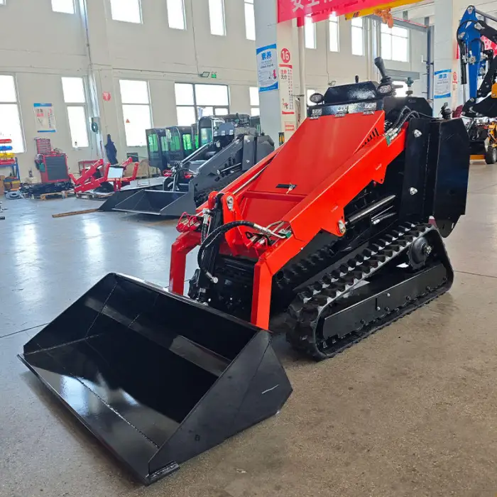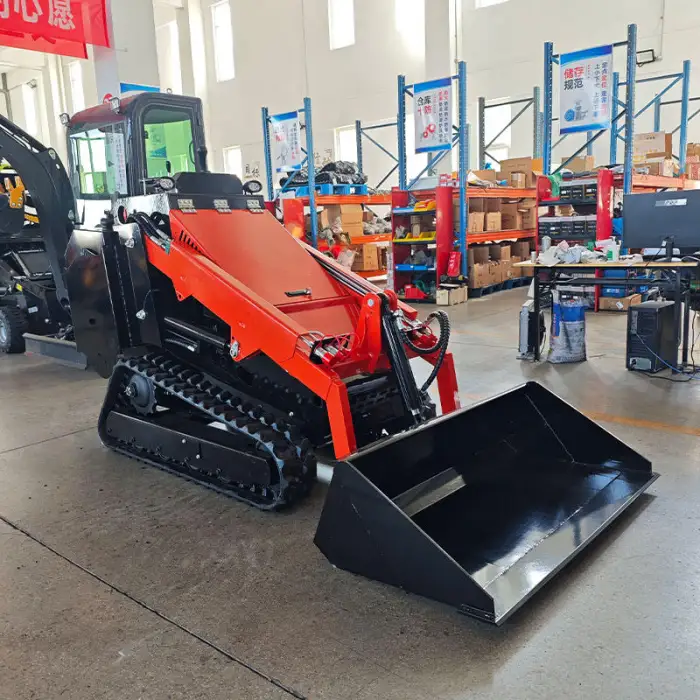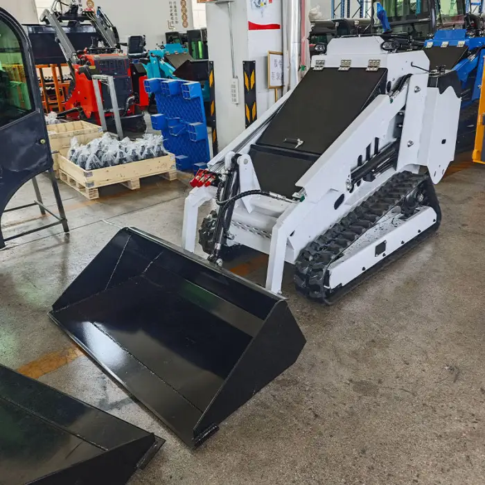 The bucket capacity of the Small Wheel Skid Steer Loader is 0.12m³.