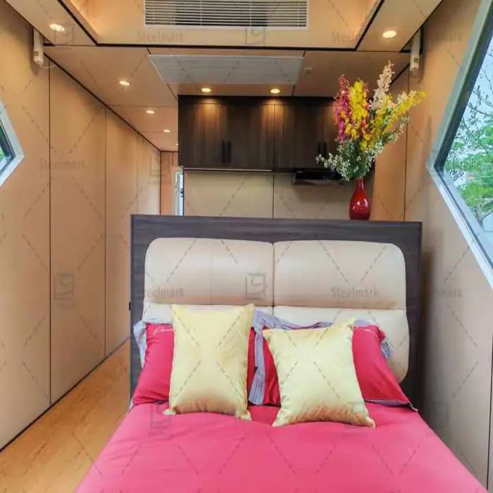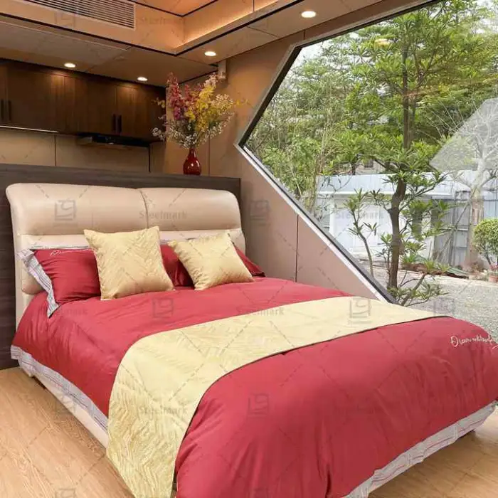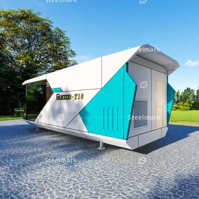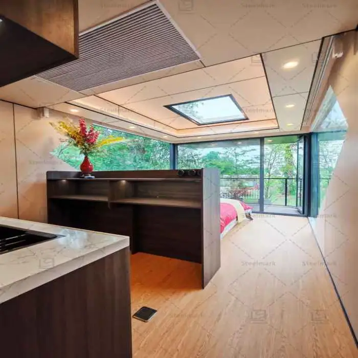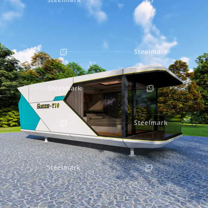 The micro-capsule is constructed using durable galvanized light steel frames and features energy-efficient, hollow LOW-E tempered glass windows.