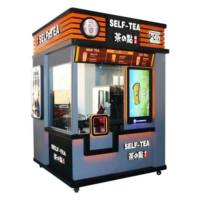 The vending machine can dispense a wide variety of beverages, including coffee, milk tea, and cold drinks.