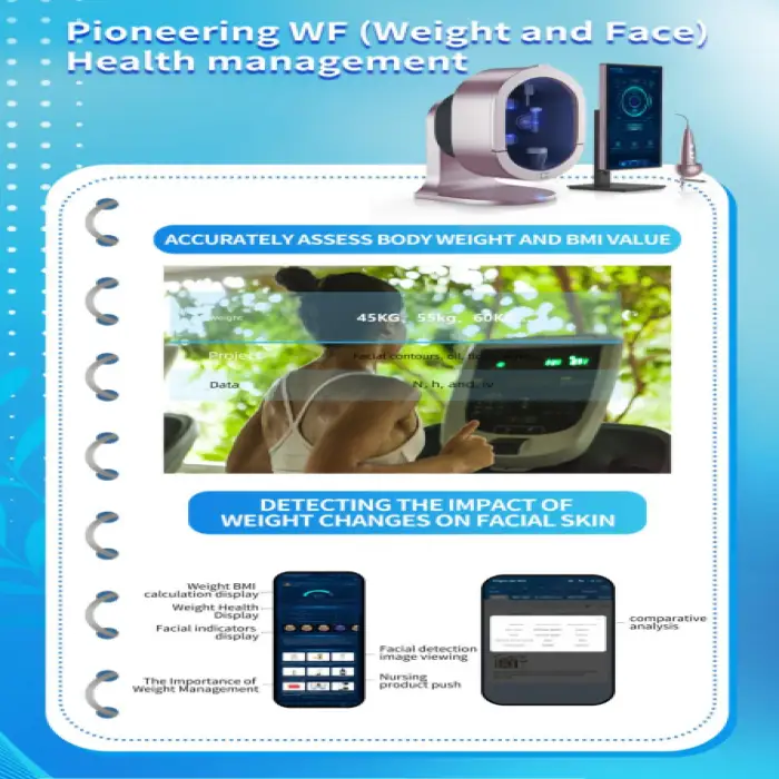 The Smart Face Scanner 3D Skin Moisture Analyzer is a professional tool designed for skin analysis, detecting various conditions such as moisture levels, wrinkles, acne, and pigmentation.