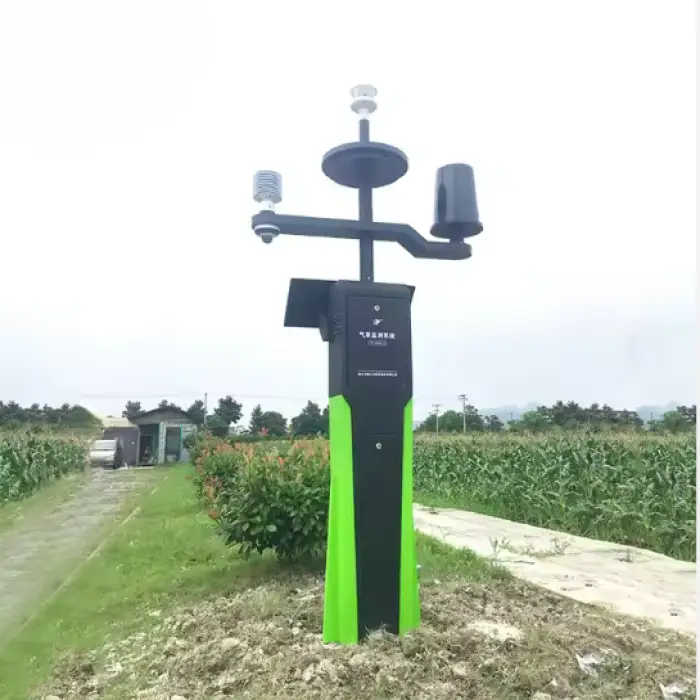 The system measures air quality, wind conditions, soil status, rainfall, crop health, and illumination.