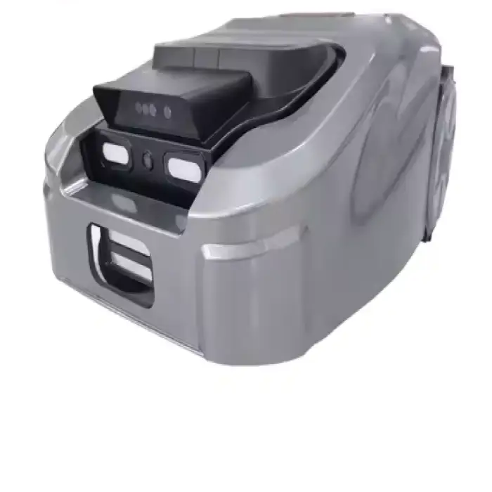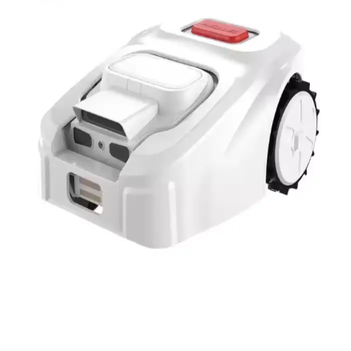 The Smart Robot Lawn Mower is powered by a 22.4V battery, providing cordless operation for easy movement.