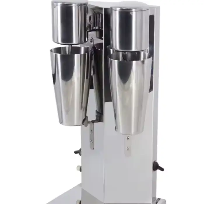 The Snack Food Machine Double Milk Shake Mixer requires a power supply of 0.36 kW and is compatible with 220V/110V standard voltage.