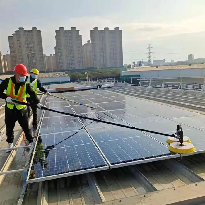 The system is suitable for cleaning residential solar panels, commercial installations, industrial facilities, rooftop systems, and solar farms.