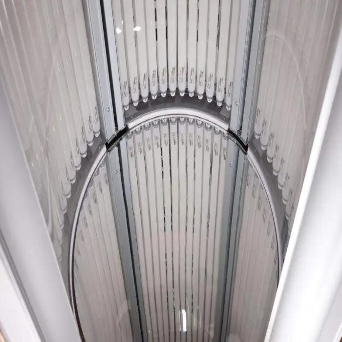 The machine uses high-quality UVA + UVB tanning lamps. Lamp quantity varies by model (44β54 lamps) and affects intensity and session time. Always follow manufacturer guidance for lamp selection and replacement.