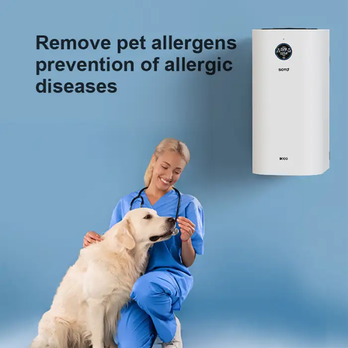 The SOTO BK100 Air Purifier is designed to purify the air by removing harmful particles and pollutants, enhancing air quality for both medical and household environments.