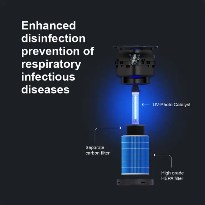 The UV lamp emits ultraviolet light that kills or inactivates microorganisms such as bacteria, viruses, and mold in the air, providing an additional layer of protection.