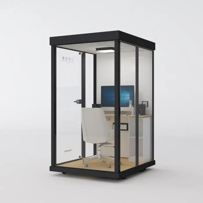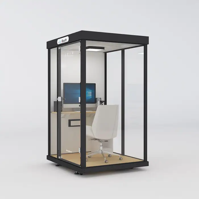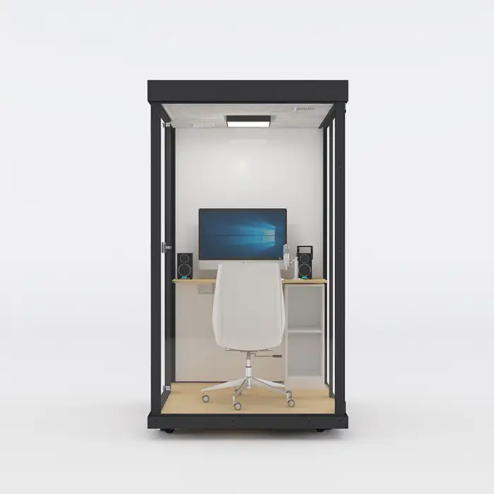 The Soundproof Office Booth is designed to create a quiet space for activities like making phone calls, recording music, or hosting meetings in busy environments.