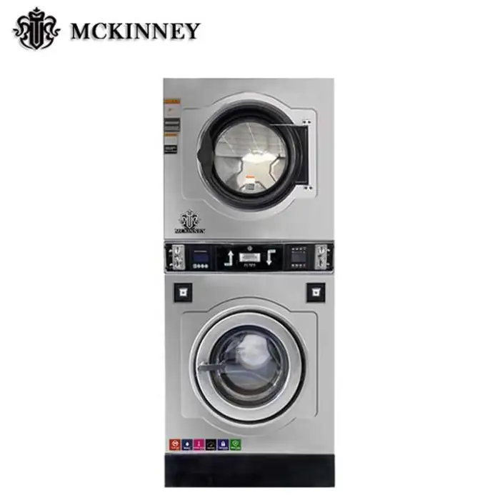 The Stacked Washer and Dryer Commercial Laundry Equipment has a capacity of 12KG, making it suitable for handling large loads.