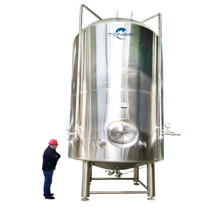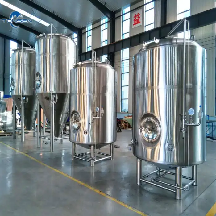 Interiors are polished to a hygienic finish suitable for bright beer, commonly Ra âĪ 0.4 Âĩm (electropolished available on request) to minimize microbial buildup and ease cleaning.