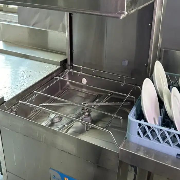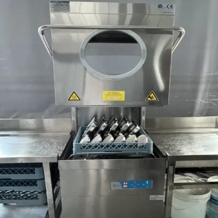The dishwasher is designed to reduce water and energy consumption, making it a cost-effective choice for both commercial and household use.