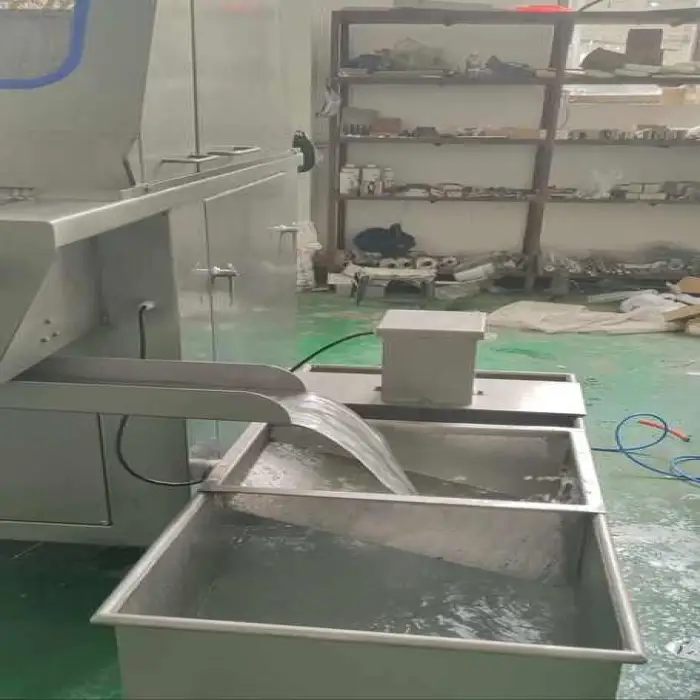 The machine features polished surfaces that make it easy to clean and maintain, ensuring hygiene in meat processing.