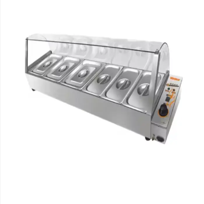 This unit is described as an electric bain marie, which means it's designed to operate as a water-bath style food warmer. Follow the user manual for correct water fill levels and operating instructions.