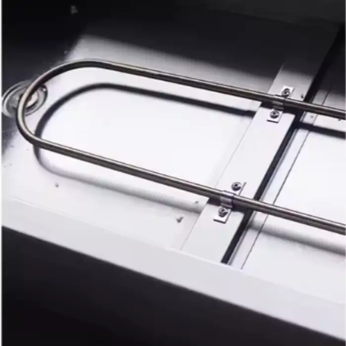 The unit includes an adjustable thermostat for temperature control and is constructed of durable stainless steel. For specific safety features such as automatic overheat protection or thermal cut-outs, check the product manual or ask the supplier for certification and safety-details.