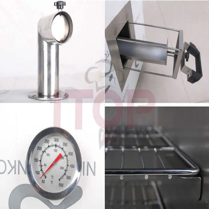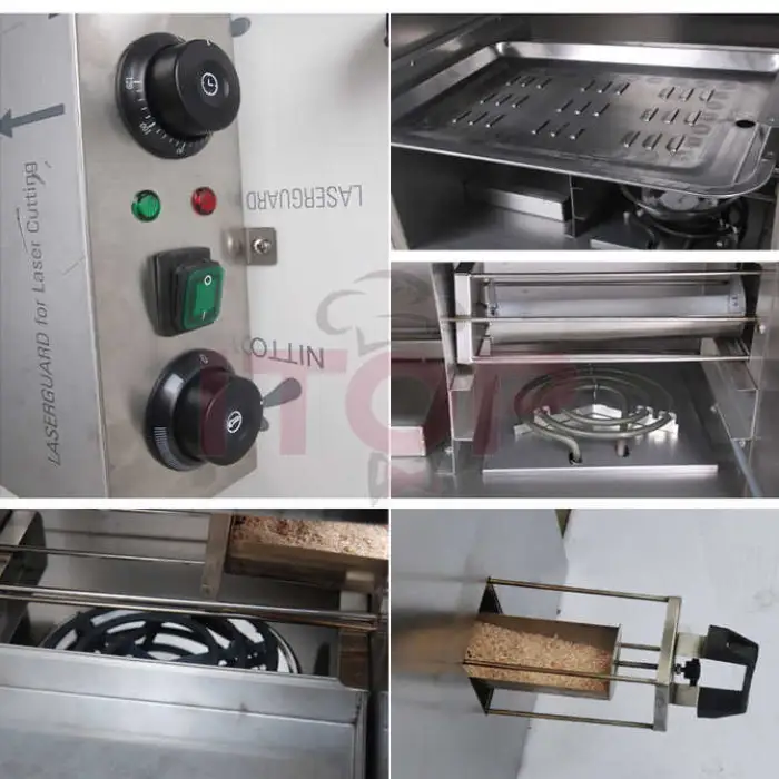 Capacity depends on item size and spacing. Each shelf is 434 × 271 mm and there are four shelves. This provides a significantly larger cooking area than a single-rack smoker — arrange products without overcrowding to ensure even smoke and heat circulation.