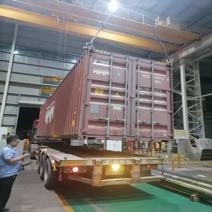The machine weighs 37 tons, which contributes to its sturdy build and stability during operation, ensuring high-quality production.