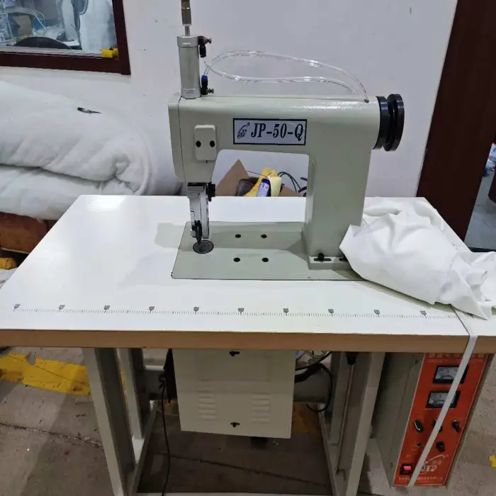Ultrasonic stitching bonds materials by applying high-frequency vibrations that locally melt and fuse thermoplastic fibers. Unlike needle-and-thread sewing, it produces sealed edges without thread, which can be faster and cleaner for many synthetic materials.
