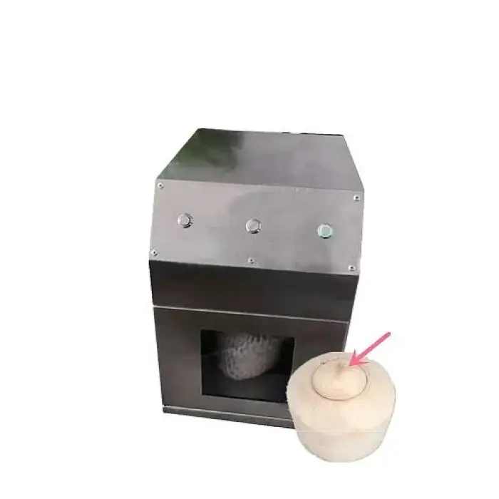 It is a motorized machine designed to quickly open green coconuts to access coconut water and meat, intended for vegetable/fruit processing, commercial catering, beverage and snack factories, bakeries and similar operations.