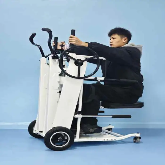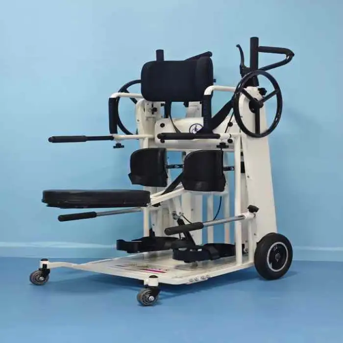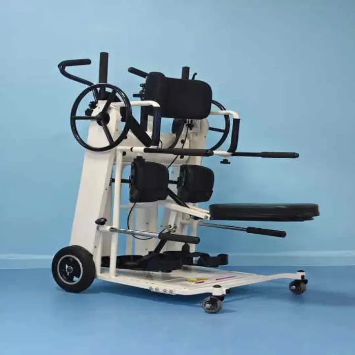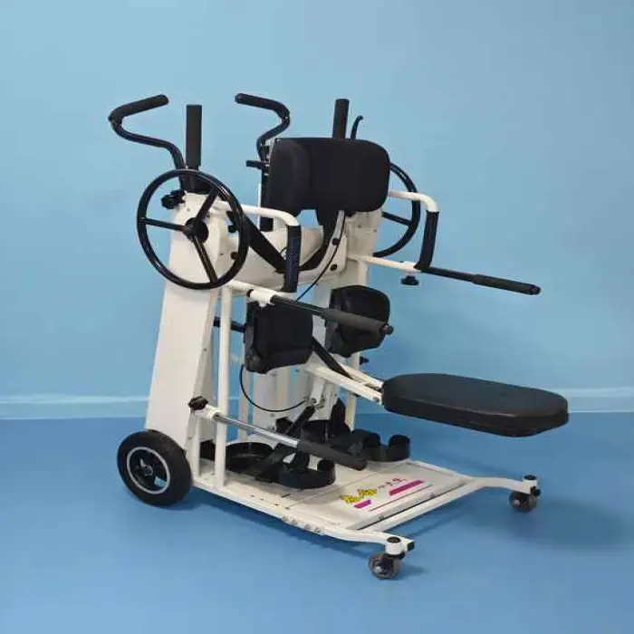 It is designed to help individuals with disabilities practice standing and walking as part of rehabilitation and physiotherapy. It's suitable for clinical therapy sessions and home-based mobility training.