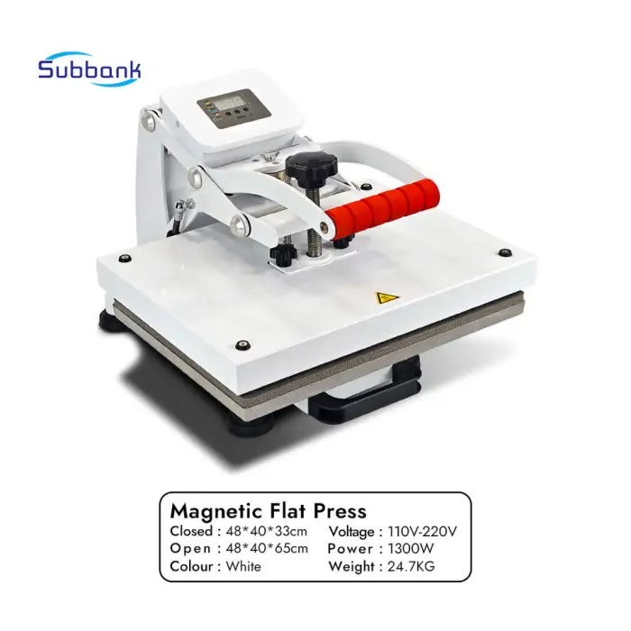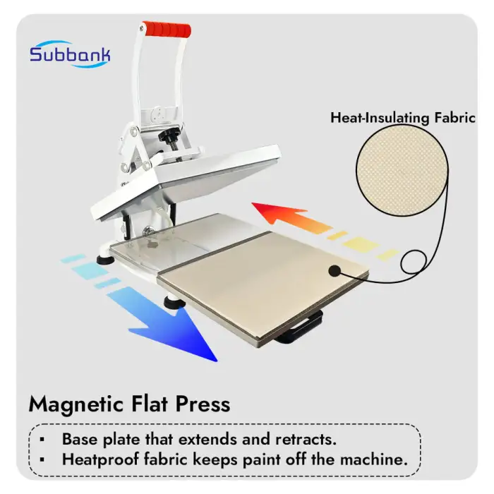 The Sublimation 2D Flat Heat Press features a durable metal shell and an aluminum heater, ensuring long-lasting performance.