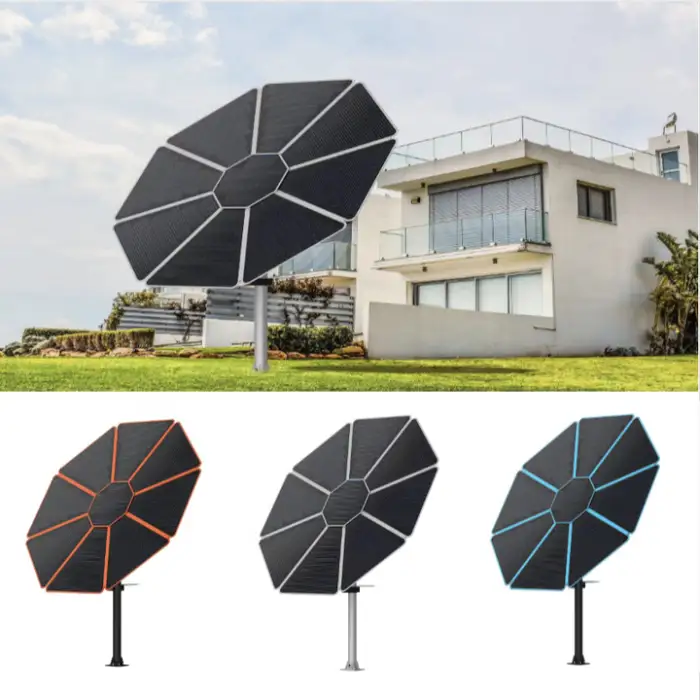 The solar tracking feature allows the panels to move and follow the sun's path, maximizing sunlight exposure and energy capture throughout the day.