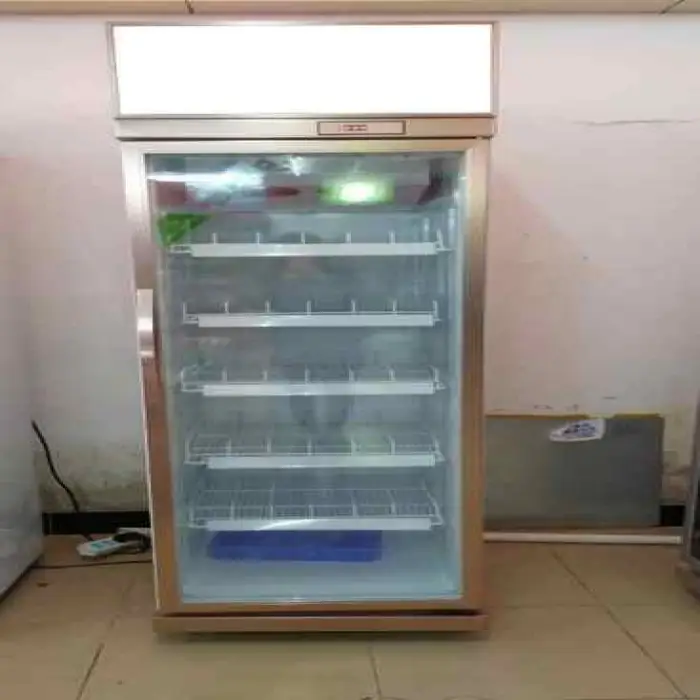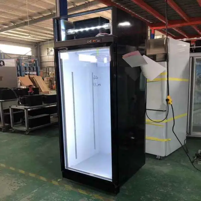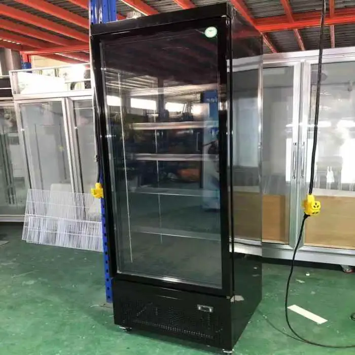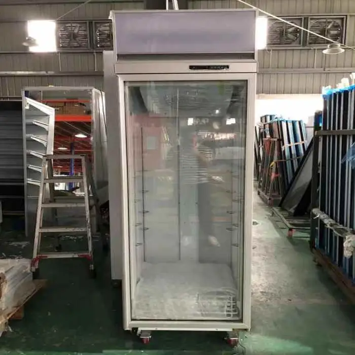 The model includes a glass door for clear visibility of products. Glass type and safety features (for example, tempered or double-glazed) vary by configuration—confirm the door specifications with your supplier.