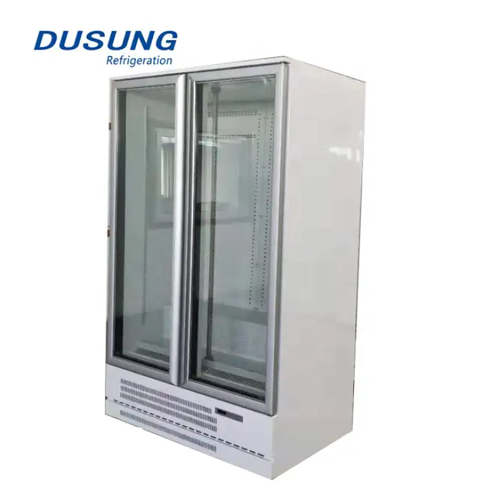 It is an upright glass-door display freezer designed for supermarkets, grocery stores, delis and butcher shops to display and refrigerate meats, drinks and other perishable products while keeping them visible to customers.